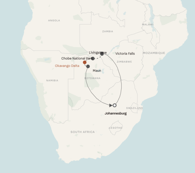 Fly to Johannesburg for your flight home. Relax in the Premier Lounge, compliments of A&K, before your departure flight or starting your Post-Tour Extension to Cape Town.