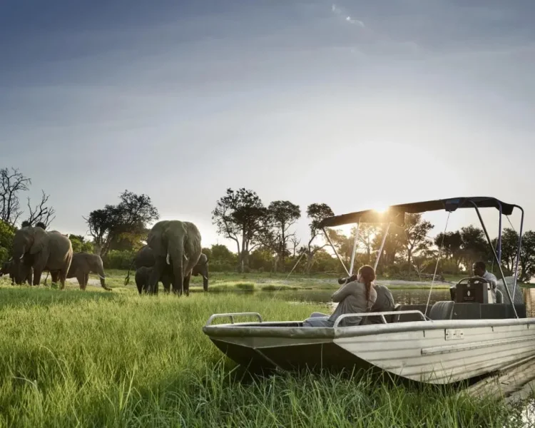 Great predators, including rare wild dogs, as well as elephants, buffalo, red lechwe, giraffes and impala roam the Okavango Delta, as you discover on an early morning game drive. Listen for roaring lions on the hunt or spy nocturnal animals as they start out for the night on your choice of game drives. Back in camp, gather for a farewell dinner beneath African skies.