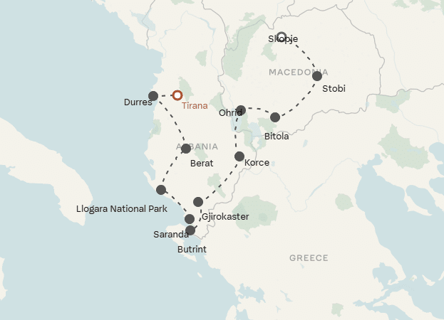 From smooth white-sand beaches to jagged Alpine peaks, Albania’s landscapes provide a dramatic backdrop for exploring its rich history and culture. Well-preserved remnants of the Ottoman Empire are found along with Byzantine churches, in cobblestoned towns where visitors are welcomed with flavorful dishes and easygoing hospitality. Korca is considered the cultural heart of southeastern Albania. Explore its Old Bazaar and visit the National Medieval Art Museum. At a local restaurant, partake in a hands-on cooking class led by a chef who once cooked for a U.S. president. Share the delightful meal you created together before continuing to Gjirokastra, driving through the picturesque village of Germenji as well as pristine Vjosa River National Park.