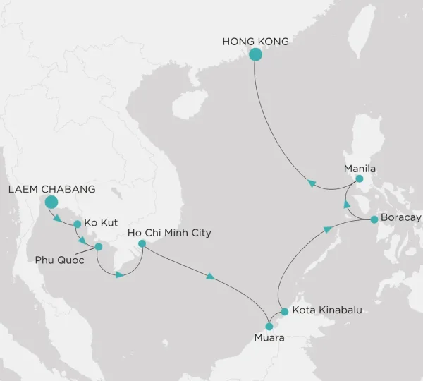 Wave goodbye to Laem Chabang, the port for Bangkok, for a closer look at Southeast Asia. Your first stop is Ko Kut, a Thai island admired for the untouched quality of its wilderness. Alongisde its sugar sands such as Ao Noi with its pretty wooden pier. Then hop over to the Vietnamese island of Phu Quoc, another eye-catcher. It’s largely National Park but has plenty of local life to experience in the main town Duong Dong. A day at sea transports you from the sandy idylls to the bright lights of Ho Chi Minh City, where you overnight. All the enticing pleasures of a fast-growing city can be found here – museums, galleries, a culinary feast of street stalls and fine-dining restaurants, and poignant stories of wartime.