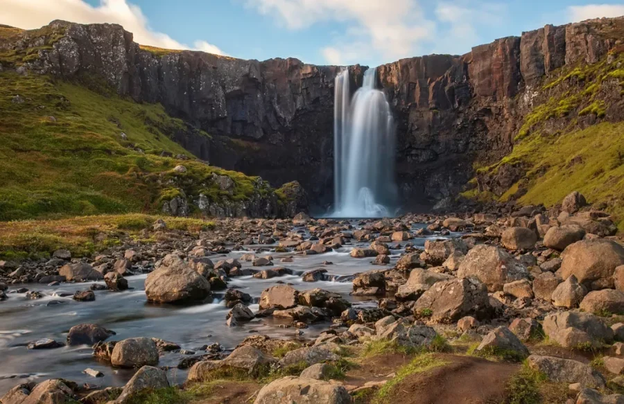 Quiet and unassuming, this charming town offers an abundance of authentic experiences. Located along one of the region’s largest fjords, discover museums, galleries, the northernmost botanical garden and nearly- northernmost golf course. Take to the skies for the ultimate view or watch the scenery unfold as you raft down a glacial canyon. Sink into a beer bath, ride Icelandic horses or visit the waterfall of Gods.