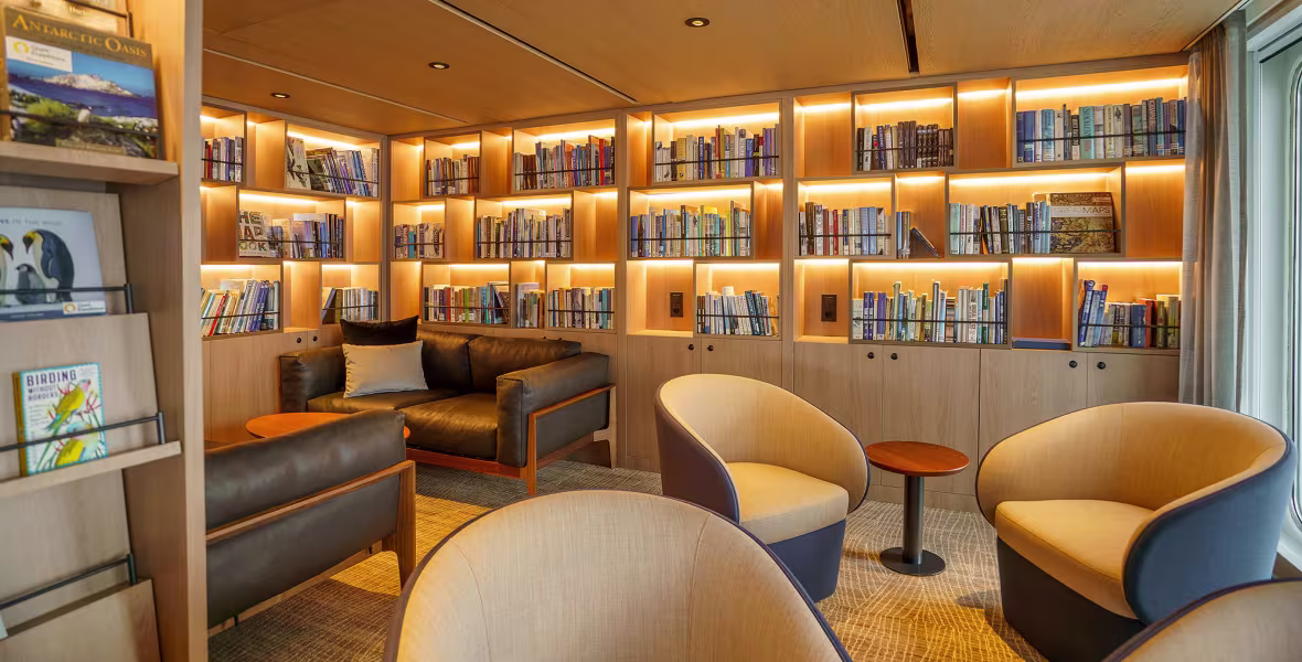 Located on Deck 7, the library offers a large collection of field guides, picture books and reference books, and also includes a selection of games for your entertainment. The Ultramarine collection includes books in multiple languages covering