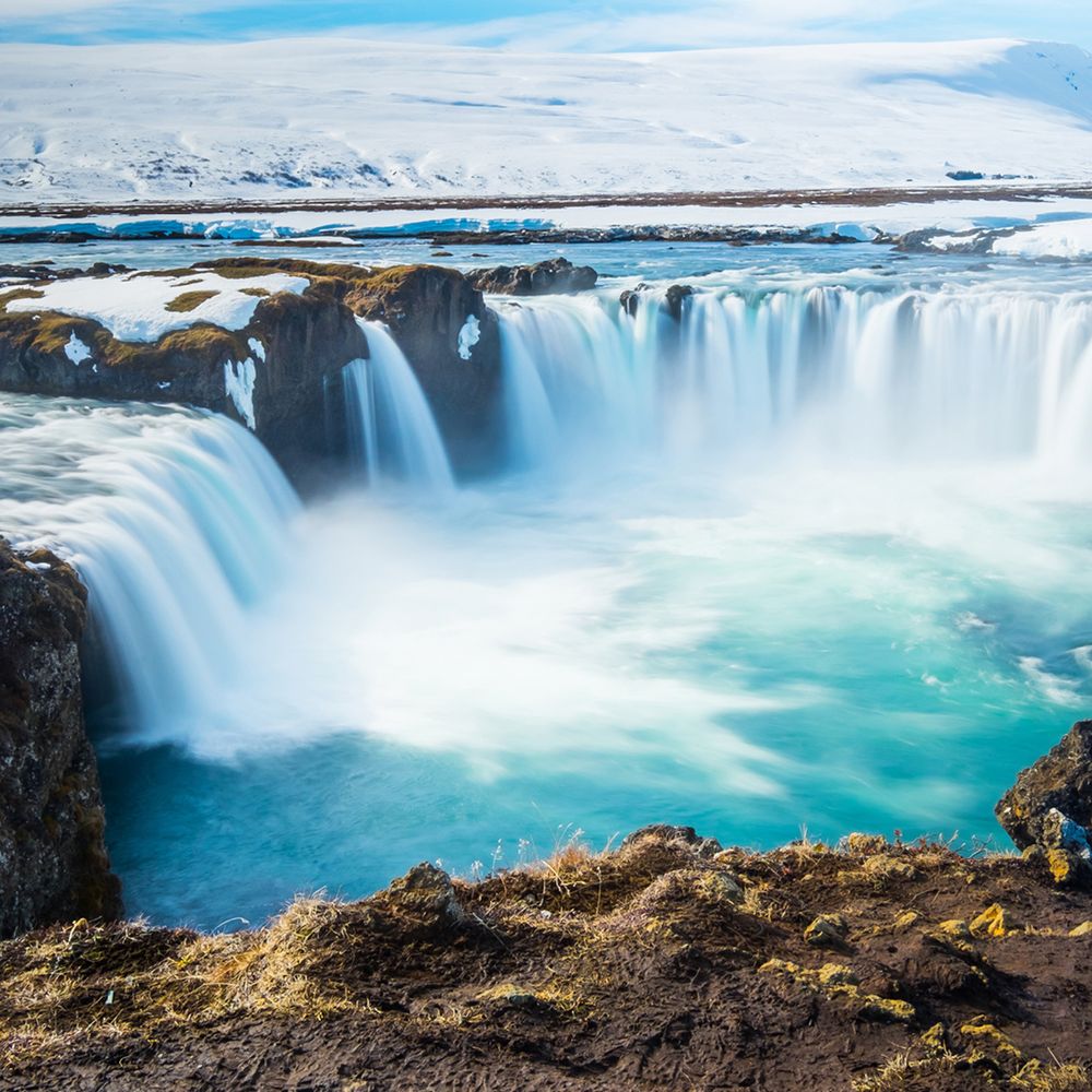 Picture Perfect: Take the photographs of a lifetime with a stop at North Iceland’s historic and magnificent Goðafoss waterfall, stretching 90 feet across dramatic rock formations to deliver its spectacular cascades along the glacial-fed Skjálfandafljót River.