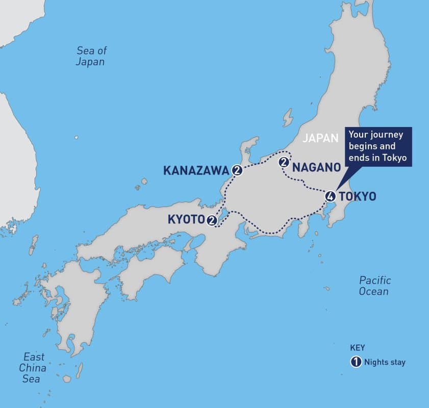 Discover the timeless beauty of Japan on this unforgettable 11-day rail holiday, connecting vibrant cities, historic towns, and serene landscapes. Begin your adventure in Tokyo, where futuristic skyscrapers sit alongside ancient temples. Wander the peaceful streets of Kamakura and learn the rhythms of tradition in a Taiko drumming class. Travel through the picturesque mountains of Nagano to see the famous snow monkeys, then continue to Kanazawa for its well-preserved samurai and geisha districts. Explore the sacred temples and bamboo groves of Kyoto before returning to Tokyo. With scenic train rides, immersive cultural experiences, and expert guides along the way, this journey offers the perfect blend of heritage, nature, and modern-day marvels.