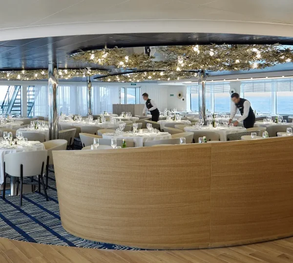 During your journey at sea, make the most of the many services and activities on board. Treat yourself to a moment of relaxation in the spa or stay in shape in the fitness centre. Depending on the season, let yourself be tempted by the swimming pool or a spot of sunbathing. This journey without a port of call will also be an opportunity to enjoy the conferences or shows proposed on board, depending on the activities offered, or to do some shopping in the boutique or to meet the PONANT photographers in their dedicated space. As for lovers of the open sea, they will be able to visit the ship’s upper deck to admire the spectacle of the waves and perhaps be lucky enough to observe marine species. A truly enchanted interlude, combining comfort, rest and entertainment.