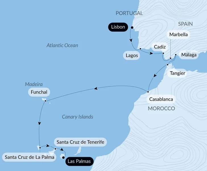 Set sail aboard Ponant Le Champlain on an exceptional 14-day itinerary. It will start at the Moorish worlds of Andalusia and Morocco. Then go to the Atlantic archipelagos of Madeira and the Canary Islands. It’s filled of great historical and cultural import and also of great natural beauty.