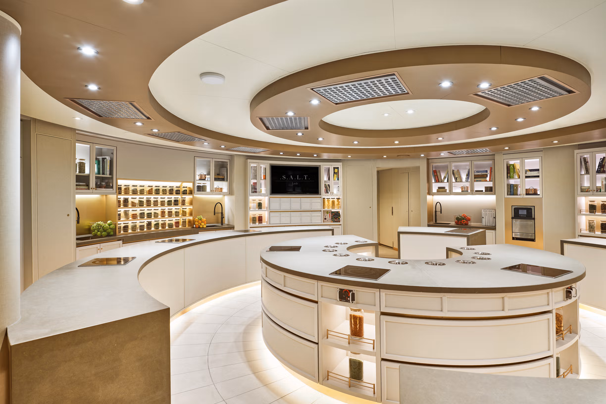 S.A.L.T. Kitchen transforms dining into discovery with menus that reflect the cuisines of the places you’ll visit. This complimentary venue is the only restaurant at sea with an ever-changing menu based on destination. Plus, a standing menu focuses on broader regional specialties, complemented by a menu featuring hyperlocal fare. Dishes are inspired by local flavors and prepared with responsibly sourced ingredients. Accompanied by a curated selection of over 160 regional wines, S.A.L.T. Kitchen delivers an immersive taste of place without ever leaving the ship.