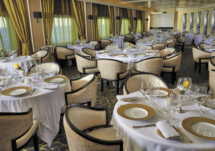 This elegant restaurant is Regent Seven Seas Cruises’ steakhouse. Dine on the finest cuts of beef and sit in leather chairs. This specialty restaurant is only open for dinner and requires reservations.