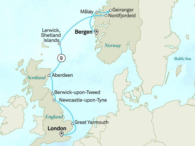 Your journey concludes in Bergen, Norway’s World Heritage-listed coastal city, where colourful wooden houses line the historic waterfront of Bryggen, once a key trading post of the Hanseatic League. Savour one last delicious breakfast on your Discovery Yacht before saying farewell to the crew who have shared this once-in-a-lifetime journey with you. As you disembark, share the highlights of your journey in this spectacular part of the world with your new friends, knowing you have created stories for life.