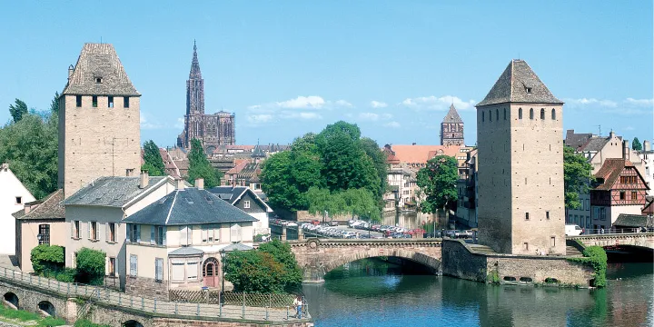 The largest port on the Upper Rhine, Strasbourg is the cultural center of France’s Alsace region. Thanks to its location at the border of France and Germany, it boasts a convivial mix of cultural influences. The well-preserved old town is enclosed on all sides by the little Ill River, with sites so compact that it is easy to explore the “island” on foot. And there is plenty to explore: cobblestone streets lined with wooden houses and intersected by picturesque canals. Indulging in Alsatian café culture is central to any visit here; enjoy coffee and cake amid lovely half-timbered houses.