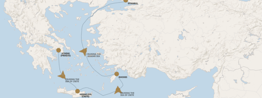 Experience a refined 10 night Mediterranean journey aboard the Regent Seven Seas Voyager, sailing from Athens to Istanbul exploring ports throughout the Greek Isles. Discover iconic destinations and timeless coastal beauty, all complemented by the comfort and sophistication of ultra-luxury cruising.