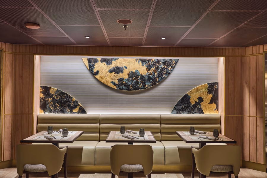 Meals at Kaiseki are rooted in the Japanese philosophy of balance and precision. By day, refreshing sushi, sashimi, and izakaya-style dishes guide the menu. During dinner, specialties like miso black cod and wagyu teriyaki nod to Japan’s enduring culinary legacy, while fine sake, whiskies, and teas enhance every course. Per guest reservation fee of US$40.