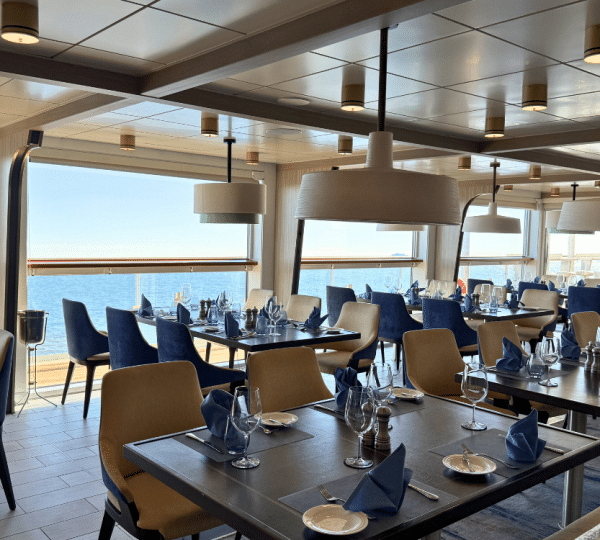 Arguably the place with the best views onboard is the Observation Lounge. It’s located on the very top floor on level eight and also has an accompanying wraparound deck with panoramic views. We spent so many nights up here with the Expedition Team and fellow travellers. There were many rare and spectacular sightings on our voyage, which we were very lucky to have. From the Observation Deck, we had packs of Orcas, Humpbacks and even Fin whales come right up to the boat. From penguins dancing on icebergs, to seals lazying about…the Observation Lounge was the place to be! Plus, the Blue Hope Bar is also there, serving up whatever cocktail or drink you fancy.