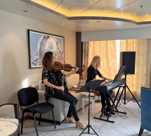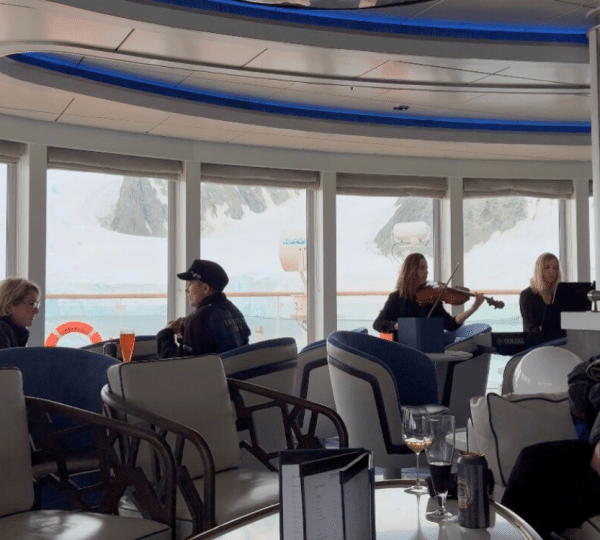 There are a couple areas to enjoy a drink and chat to other guests. The Tektite Bar was just outside the Lecture Theatre, so many people would grab a drink before our nightly recap/briefing. Canapés were served almost each night, so it became quite a lively space in the evenings. For entertainment, there were two musicians onboard who would play piano and viola. They were a fantastic duo and elevated these types of evenings. Beer and wine was only included for lunch and dinner, but they have good-value packages ranging from beer, wine and cocktails.